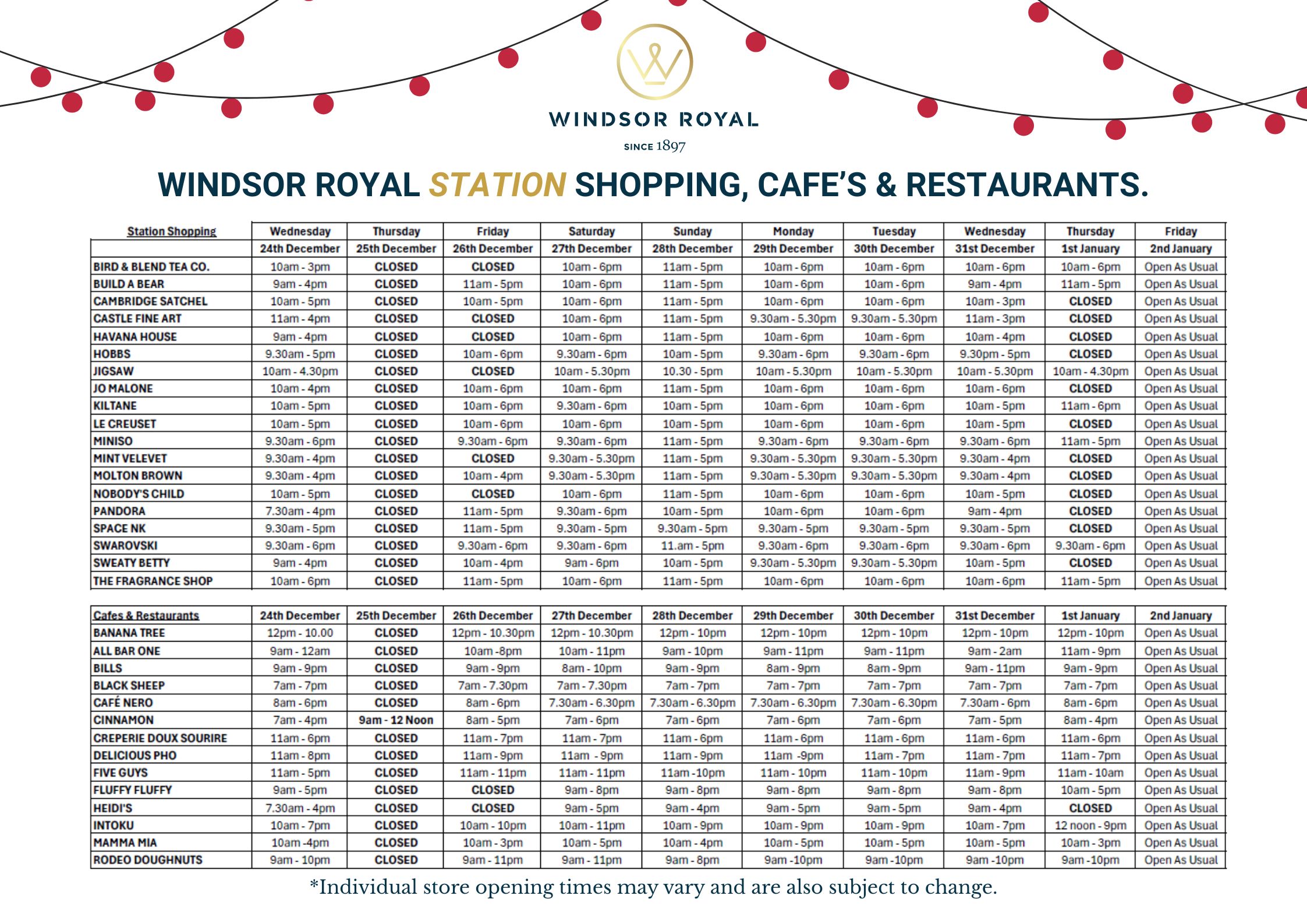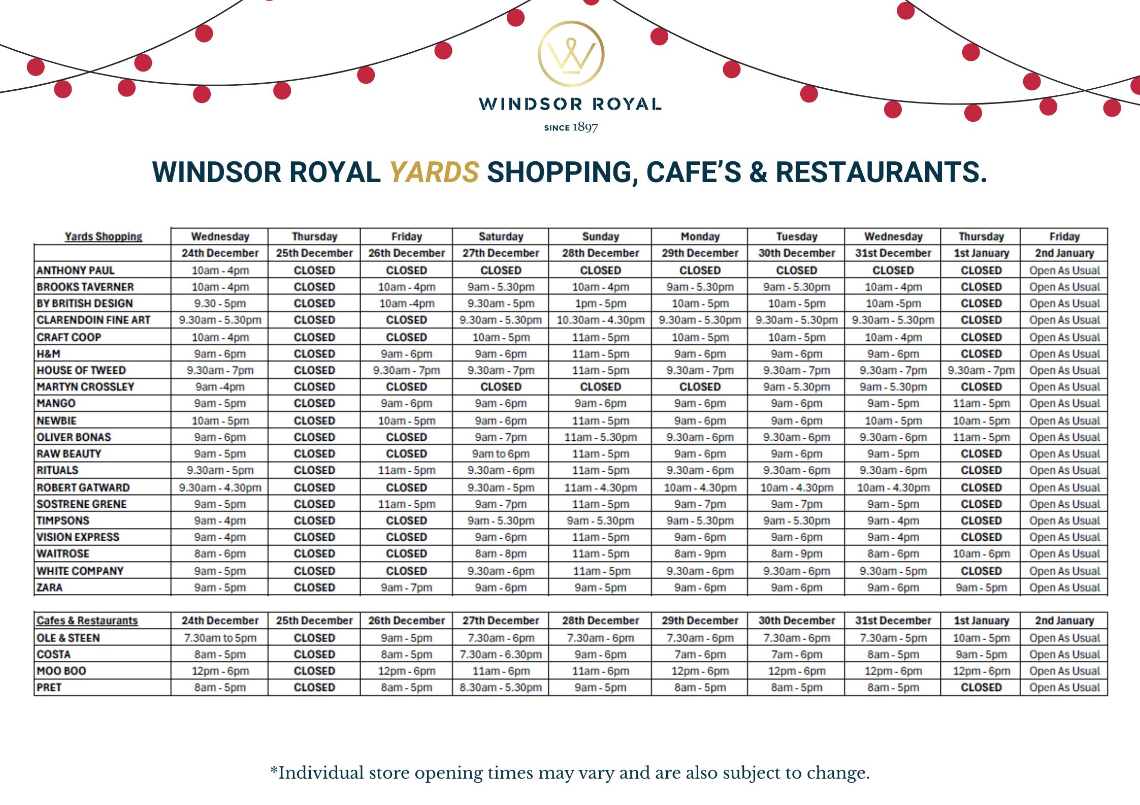 Find out about our festive opening times for Yards Shopping and Station Shopping